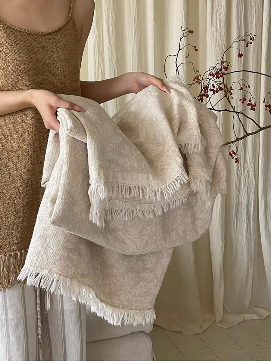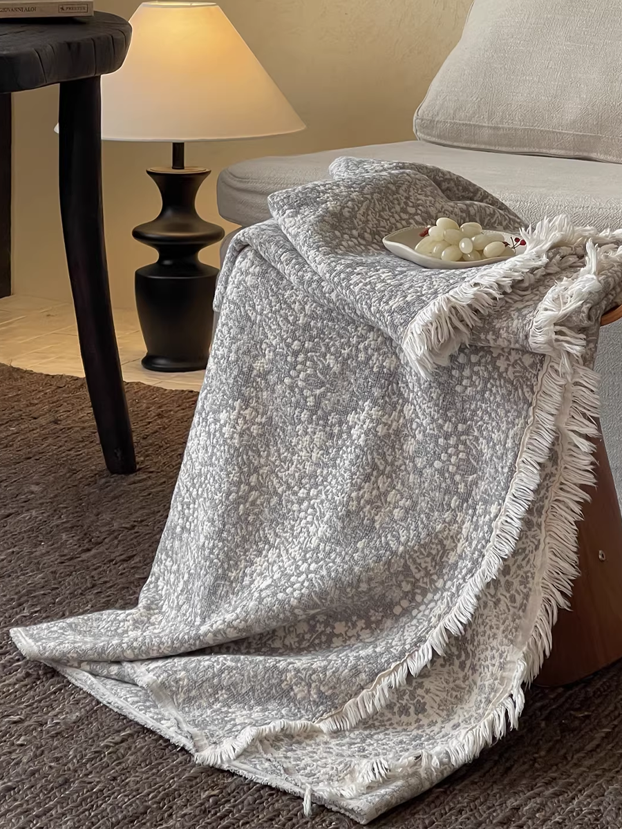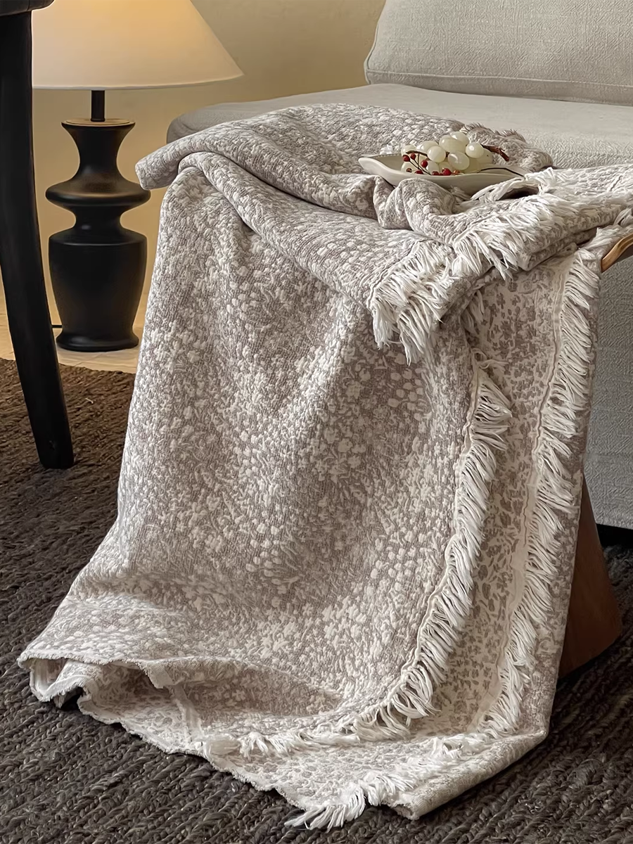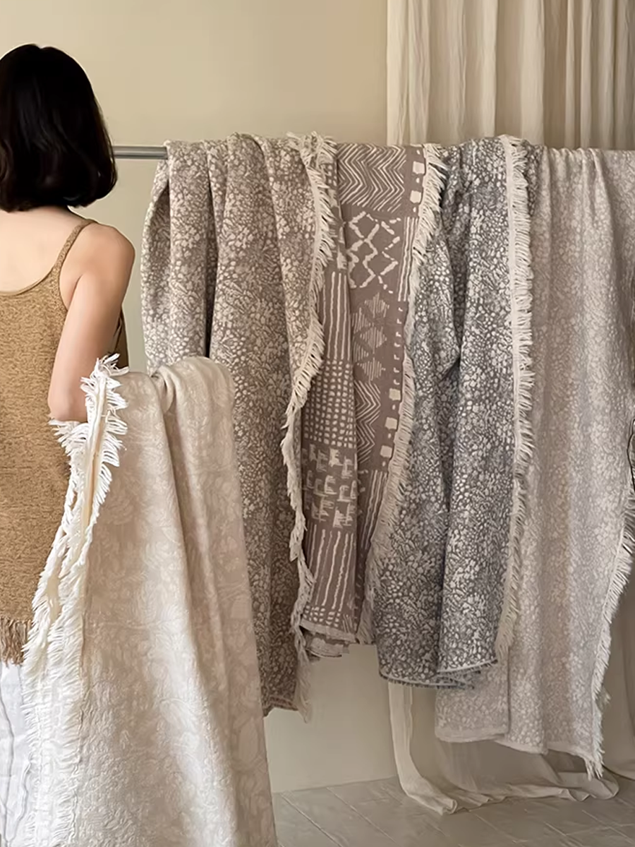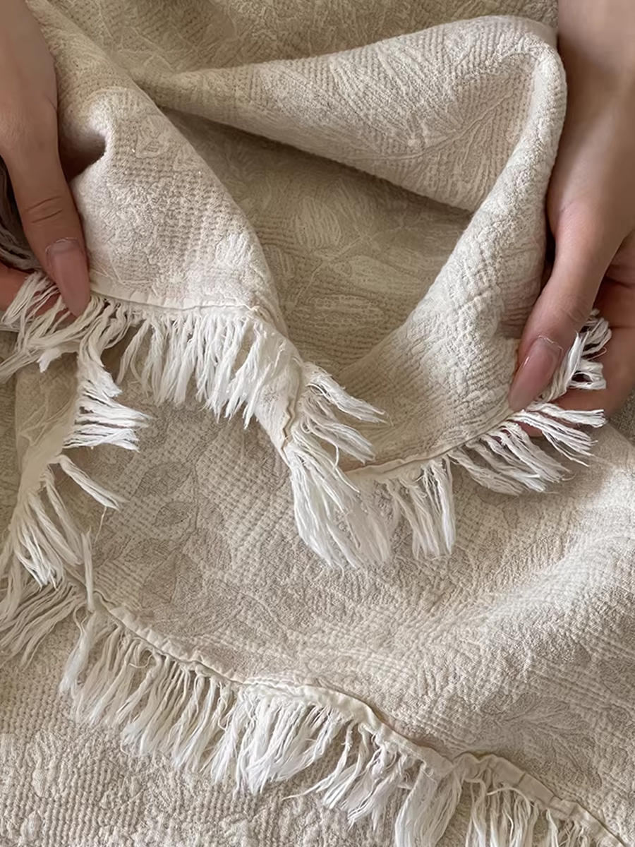 色織棉麻流蘇毯