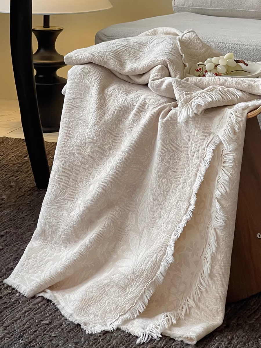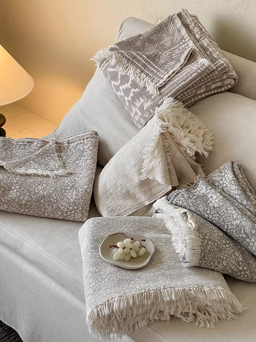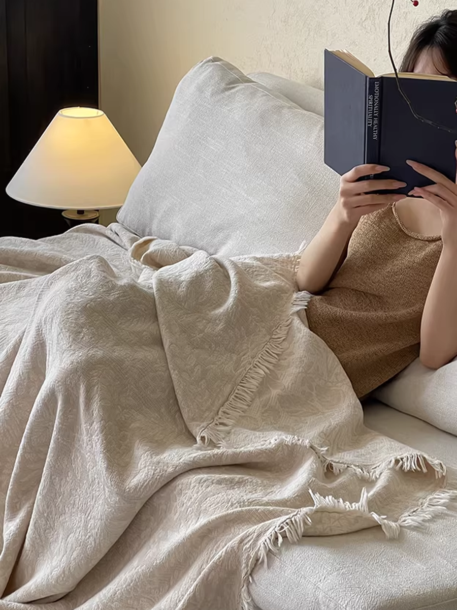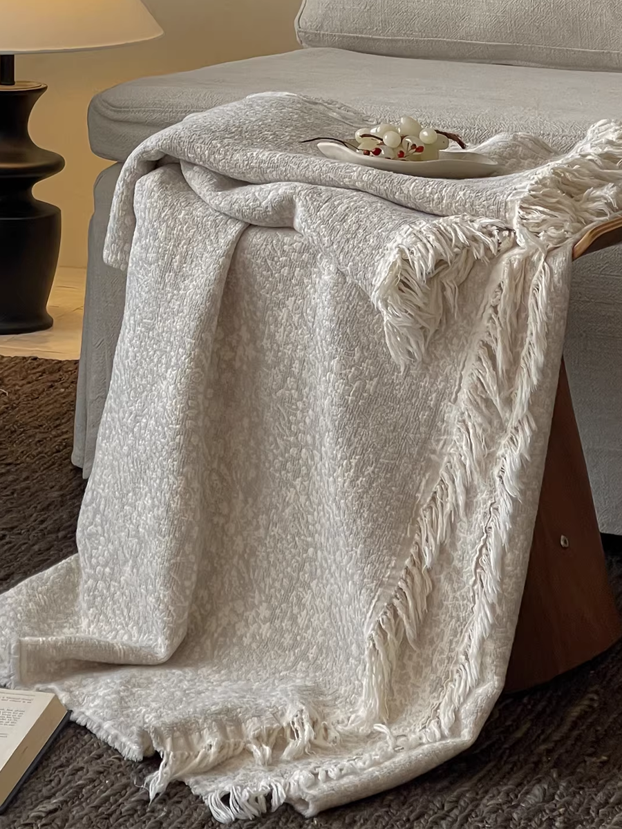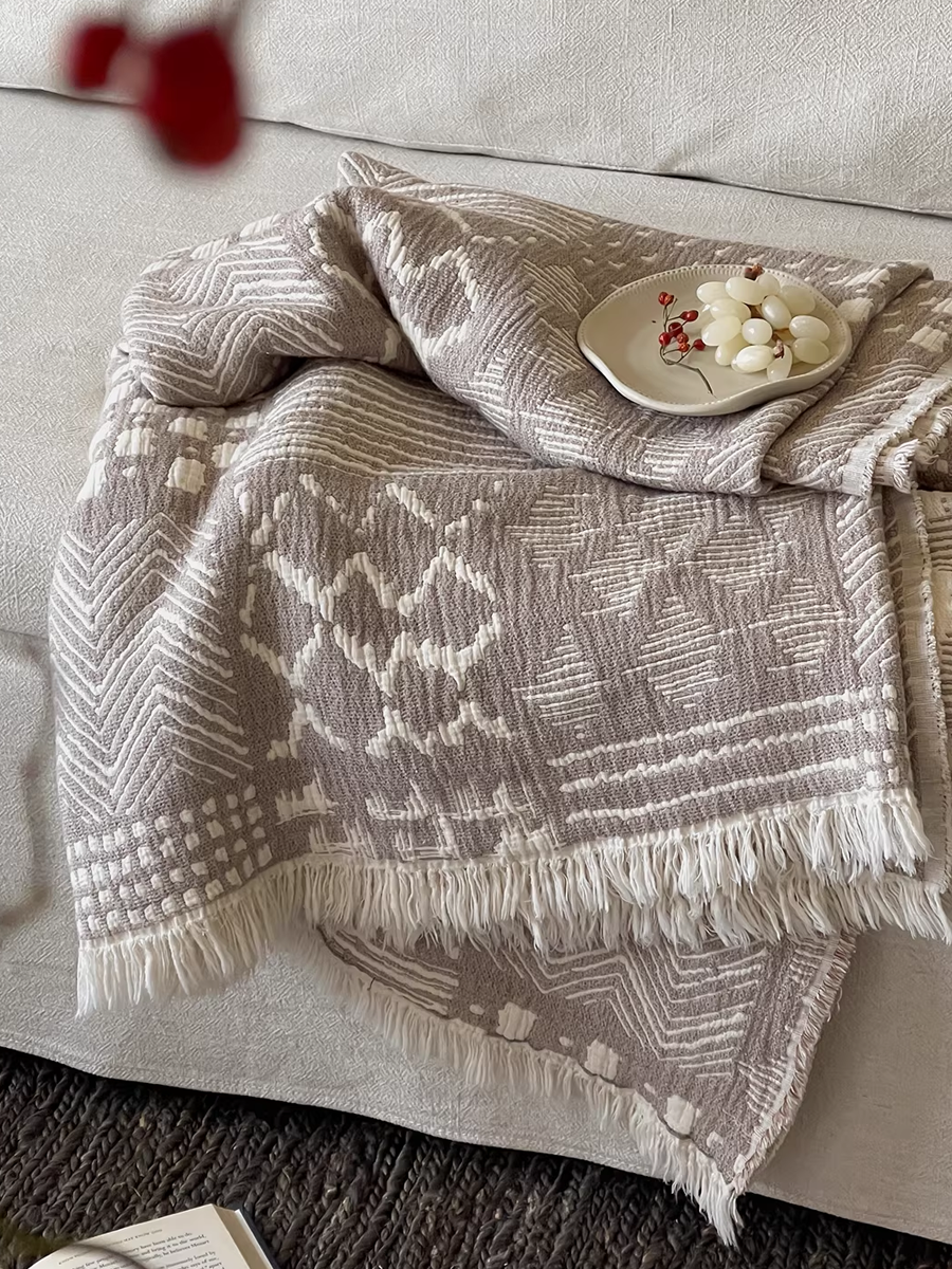 色織棉麻流蘇毯